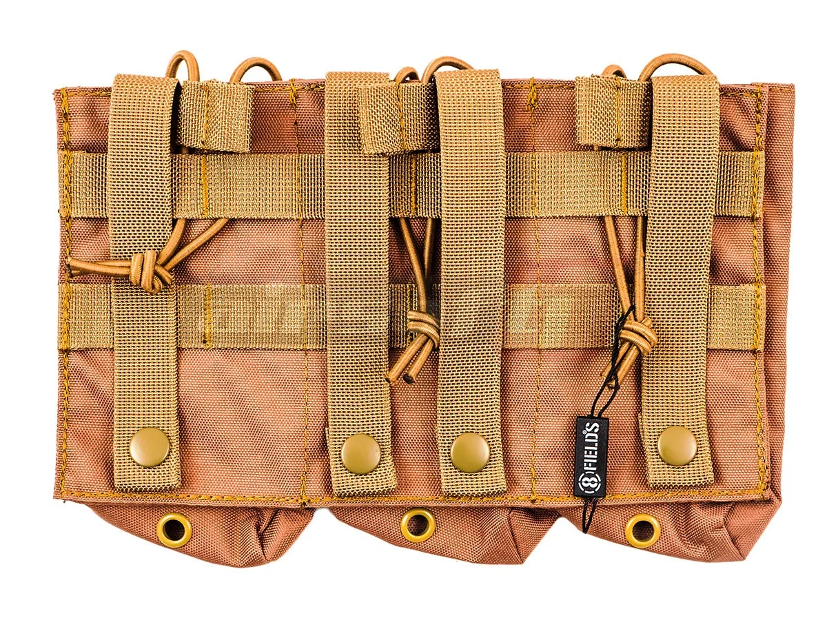 Buzunar triplu, simplu, 8Fields port incarcatoare de AK. Aceste buzunare sunt fabricate din nylon si sunt prevazute cu sistem de prindere molle, asigurand ferm incarcatoarele. Materialul utilizat asigura o rezistenta buna in timp.