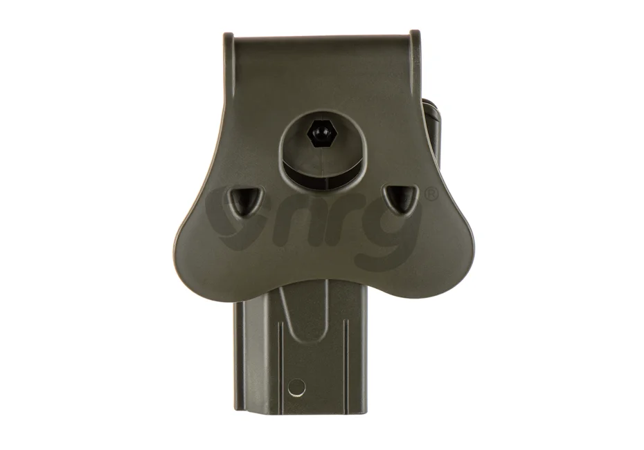 Avem placerea de a va prezenta tocul de pistol Amomax destinat platformelor HiCapa. Acest toc este gandit pentru atasarea direct pe centura sau pe echipamente tactice prevazute cu sisteme de prindere molle cu ajutorul unui adaptor. Este un toc rigid, fabricat din polimer plastic iar asigurarea pistolului in pozitie se realizeaza cu ajutorul unui buton de mari dimensiuni, usor accesibil. Avantajul acestui toc este usurinta de exploatare. Se fixeaza rapid pe centura iar odata fixat, introducerea si extragerea pistolului este extrem de rapida dar totodata sigura.Acest toc ofera posibilitatea de rotire a intregului ansamblu 360°.