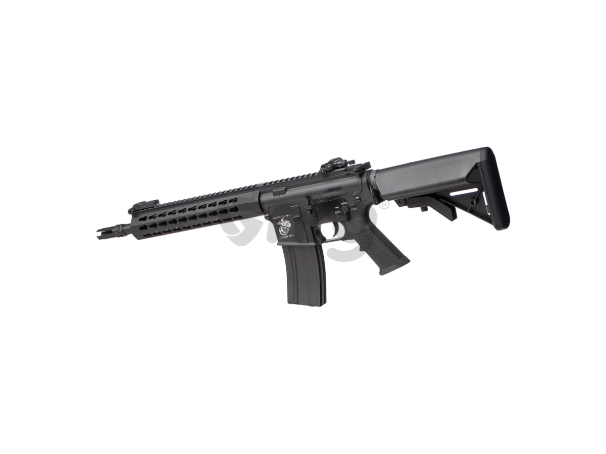 Asadar, va prezentam replica de airsoft M4 Defender 10 Inch QR 1.0 EGV fabricata de E&C . Realizata in intregime din metal dotata cu sine de tip keymod in partea frontala pentru a putea atasa accesorii cum ar fi lanterna sau laser sau sisteme de ochire avansate. Calitatea finisajelor sunt de remarcat dat fiind segmentul din care fac parte aceste jucarii minunate. Asamblarea este buna iar materialele folosite sunt calitative.