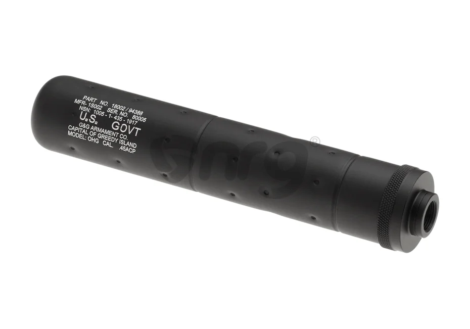 Amortizor fabricat de G&G din aluminiu. Are un diametru de 35 mm. Amortizorul reuseste sa atenueze o parte din sunetul produs de bila ce paraseste teava interna a replicii. Lungimea este de 190mm