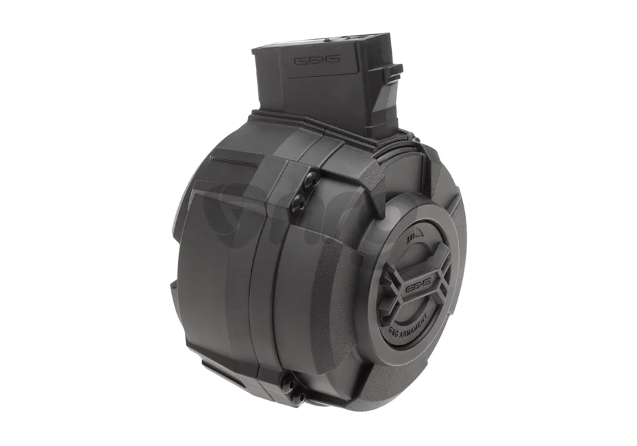 Incarcator drum mag marca G&G. Incarcatorul este realizat din ABS si metal si are o capacitate de 2200 bile de 6mm.