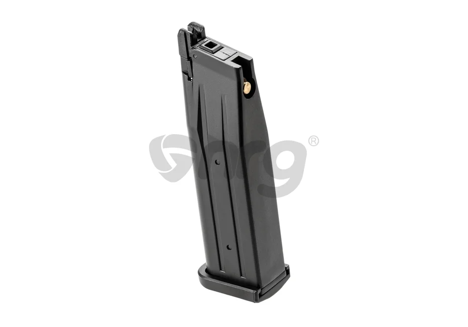 Incarcator produs de catre Golden Eagle pentru platforma Hi-Capa 3305/3306/3307 . Acest incarcator poate fi folosit cu gaz Green Gas sau alte variante de gaz cu propietati asemanatoare.Este construit din metal iar gura de alimentare cu bile este din plastic. Capacitatea incarcatorului este de 25 de bile de 6mm.