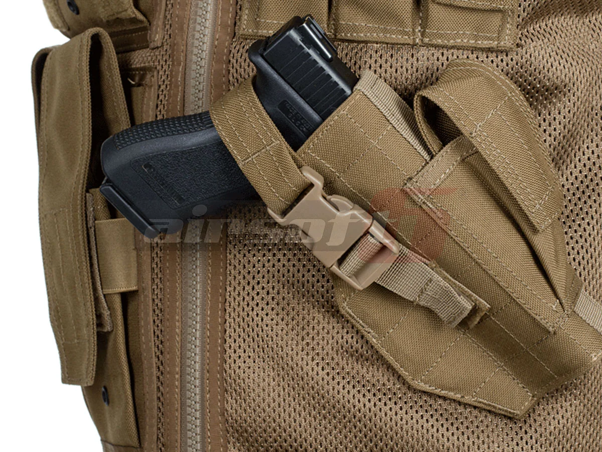 Vesta tactica fabricata de Invader Gear. Aceasta vesta este o platforma fixa din plasa de nylon rezistenta cu un grad mare de respirabilitate. Platforma fixa inseamna ca buzunarele sunt atasate permanent. Tocul de pistol poate fi reglat sau indepartat. Buzunarele vestei sunt dupa cum urmeaza: 3 buzunare in partea stanga sus destinate incarcatoarelor pentru pistol, un buzunar mare in partea dreapta sus, 2 buzunare port incarcatoare replica principala in partea dreapta jos, un buzunar port statie pe umarul stang si un toc pentru pistol prevazut cu buzunar pentru incarcator ce poate fi montat in partea stanga jos.