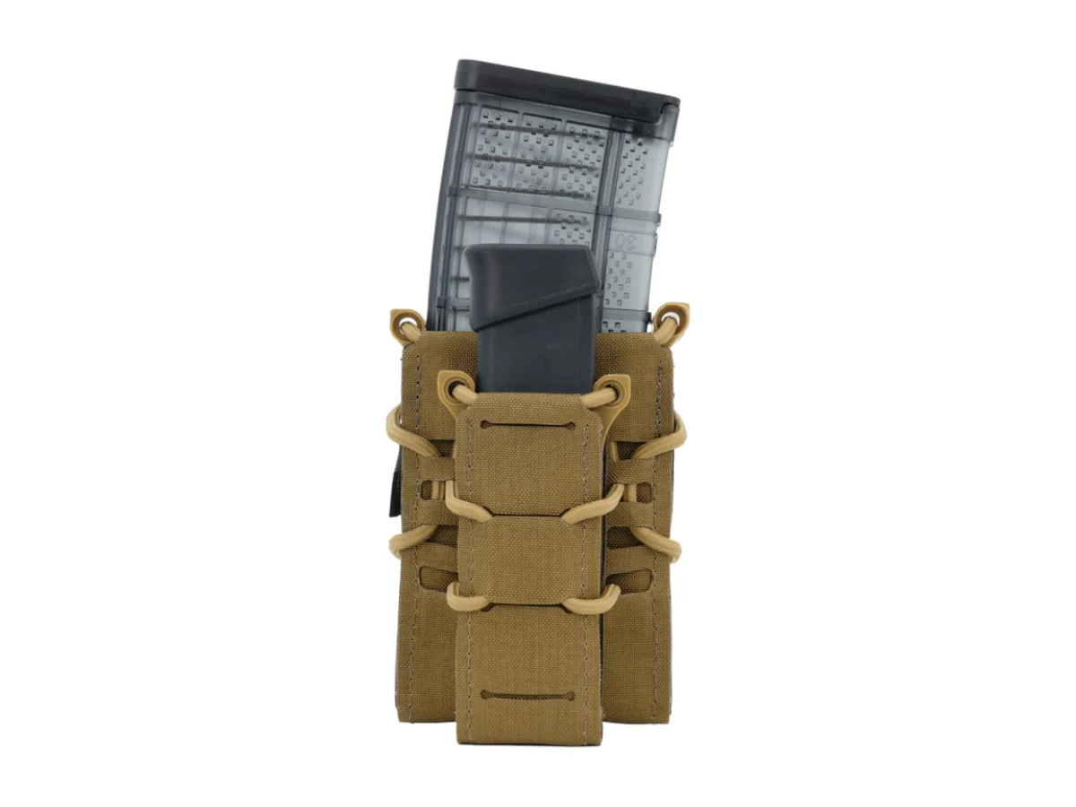 Acest buzunar fabricat de Templar's Gear este special creat pentru a putea fi atasat platformelor cu prindere de tip Molle. Acest sistem de prindere este special conceput pentru a asigura foarte bine legatura intre platforma si accesorii. Este fabricat din material nylon, rezistent la uzura iar cusaturile sunt ramforsate. Buzunarul poate gazdui 1 incarcator de tip M4/M16 si 1incarcator de Pistol. Acest buzunar utilitar este ideal pentru accesorizarea vestelor sau a centurilor in ideea de a putea mari cantitatea de incarcatoare ce poate fi carata.